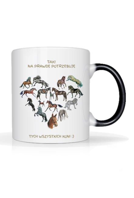KONIE - MAGICZNY KUBEK Z KOŃMI - SERCE - "TAK, POTRZEBUJĘ TYCH WSZYTSKICH KONI" - NADRUK Z 2 STRON SKU: kubek-magic_j0hp5zuh_3802837