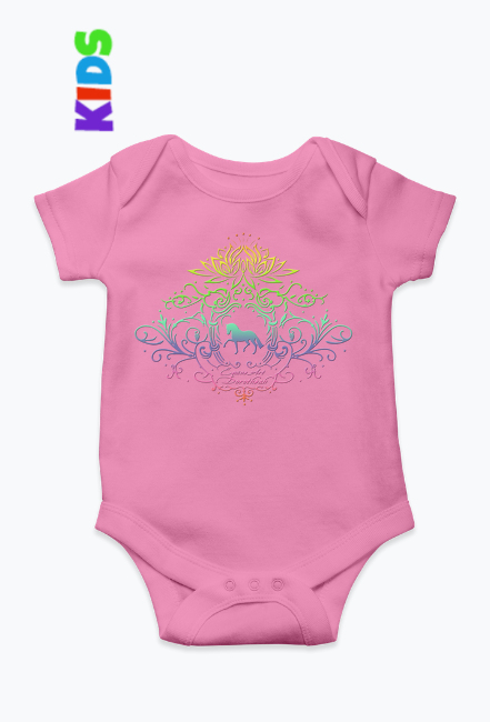 BODY NIEMOWLĘCE Z KONIKIEM - Emblem with a Rainbow Dressage Horse and a lotus ©DH SKU: body-niemowl-ce_7sgole73_4437595